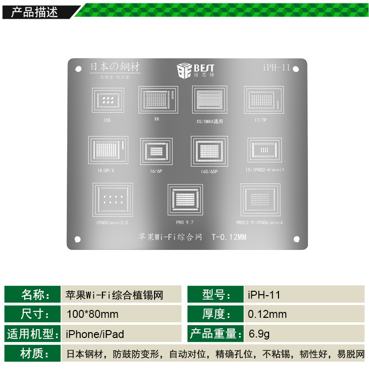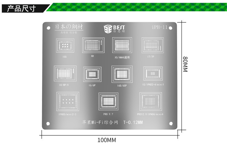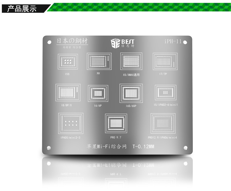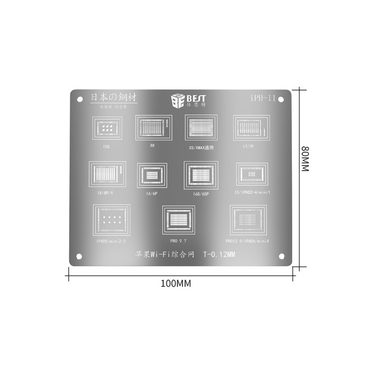 返回當(dāng)前位置: 首頁(yè) / 產(chǎn)品中心 / iPH-11 手機(jī)Wi-Fi綜合植錫網(wǎng) 多用植錫方孔定位鋼網(wǎng) 植錫卡