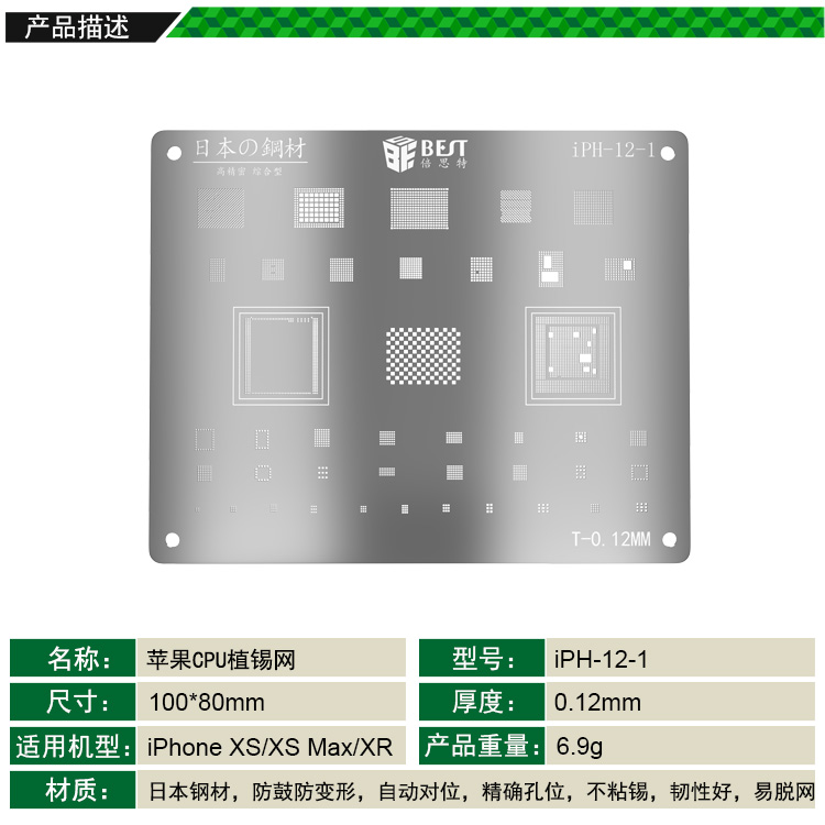 返回當(dāng)前位置: 首頁 / 產(chǎn)品中心 / iPH-12-1 手機(jī)CPU植錫網(wǎng) 多用植錫方孔定位鋼網(wǎng) 植錫卡