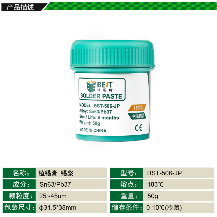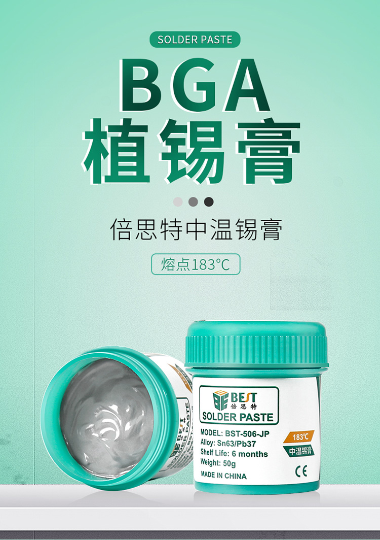 返回當(dāng)前位置: 首頁 / 產(chǎn)品中心 / BST-506-JP 中溫錫漿 BGA植錫膏 Sn63/Pb37 50g
