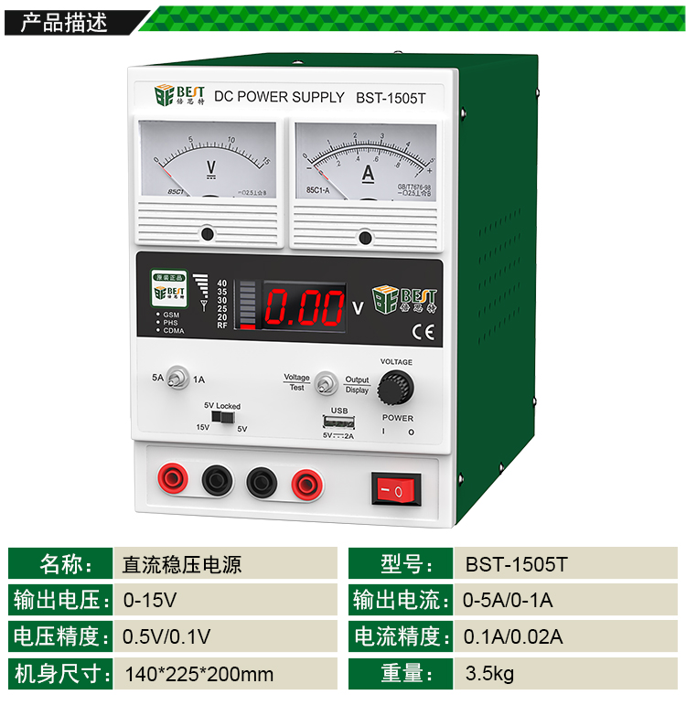 返回當(dāng)前位置: 首頁(yè) / 產(chǎn)品中心 / BST-1505T 直流穩(wěn)壓電源 15V/5A