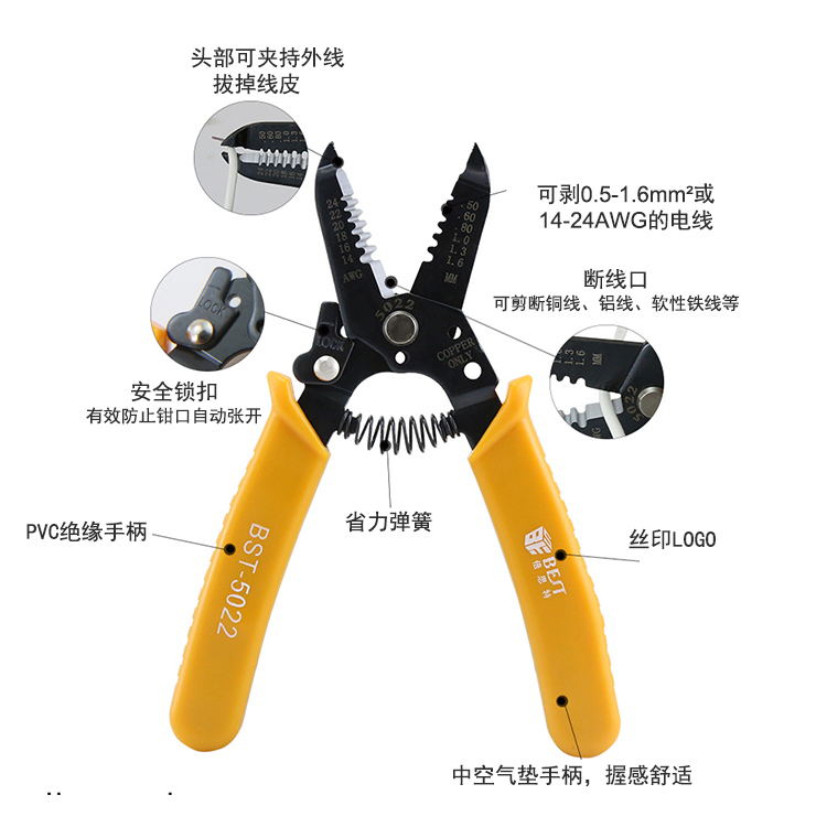 ? 產品名稱: 剝線鉗 電線鉗 多功能剝線鉗? 產品型號: BST-5022? 產品類別: 鉗子系列