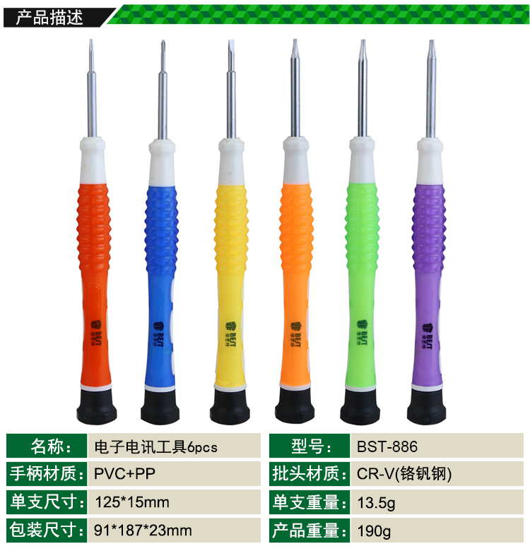 返回當前位置: 首頁 / 產(chǎn)品中心 / BST-886 電子電訊工具6pcs 螺絲套批 螺絲刀套裝
