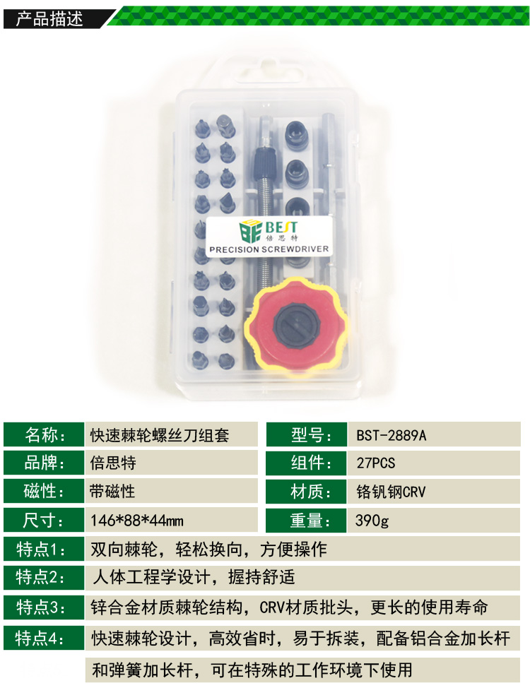 返回當(dāng)前位置: 首頁 / 產(chǎn)品中心 / BST-2889A 27件套 快速棘輪螺絲刀組套