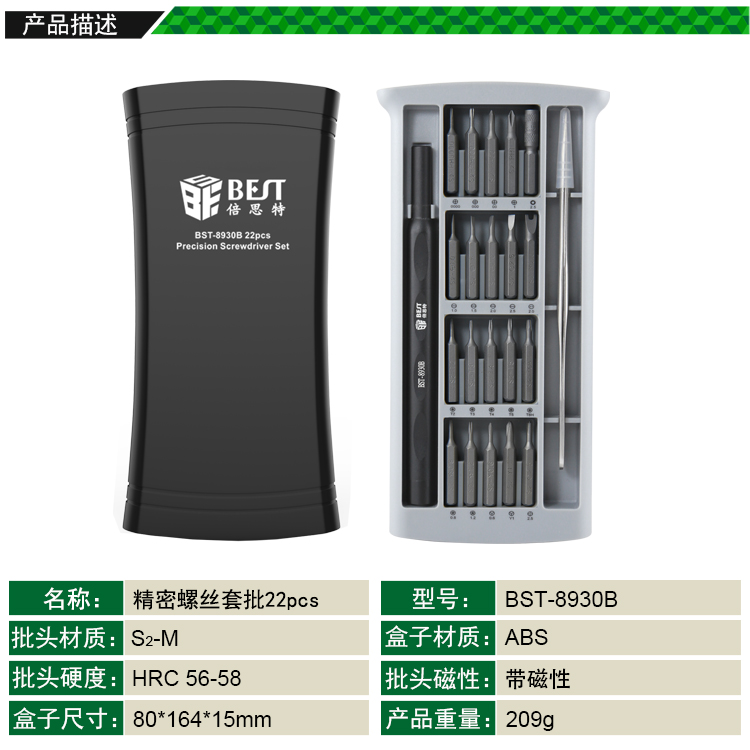 ? 產品名稱: 精密螺絲套批22pcs? 產品型號: BST-8930B? 產品類別: 螺絲批系列