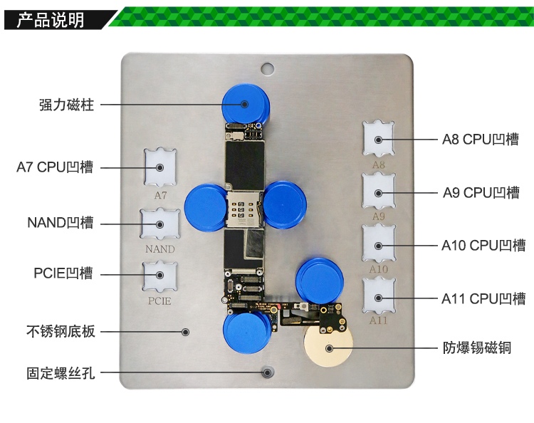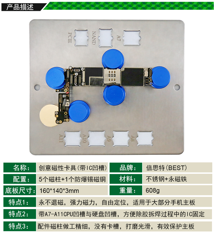 創(chuàng)意磁性卡具 磁性多功能維修夾具PCB電路主板手機主板固定磁性夾具(帶IC凹槽)