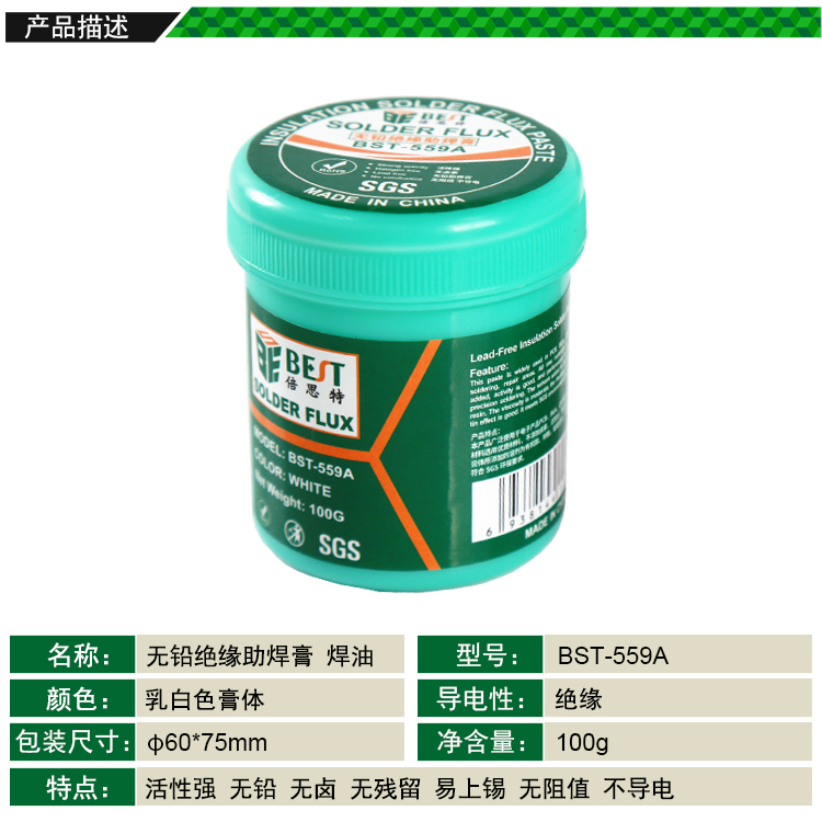 BST-559A 無(wú)鉛絕緣助焊膏 BGA助焊膏 免洗維修松香 無(wú)鉛無(wú)鹵助焊劑焊油 100g