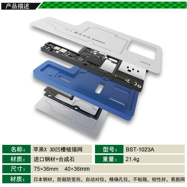 返回當(dāng)前位置: 首頁(yè) / 產(chǎn)品中心 / BST-1023A iPX 3D凹槽定位植錫網(wǎng) 激光開(kāi)孔 植錫模塊