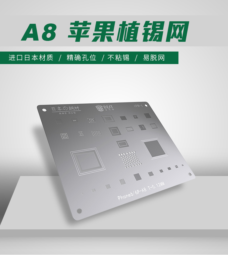 返回當(dāng)前位置: 首頁(yè) / 產(chǎn)品中心 / iPH-1 iPhone 6/6P-A8 BGA植錫網(wǎng) 多用植錫方孔定位鋼網(wǎng) 植錫卡
