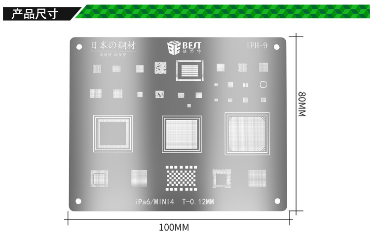 返回當(dāng)前位置: 首頁(yè) / 產(chǎn)品中心 / iPH-9 iPad 6/Mini4專用植錫網(wǎng) 多用植錫方孔定位鋼網(wǎng) 植錫卡