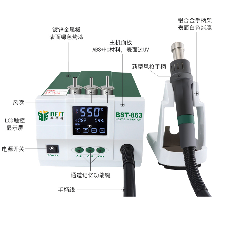 ? 產(chǎn)品名稱: 智能數(shù)顯觸控恒溫熱風槍