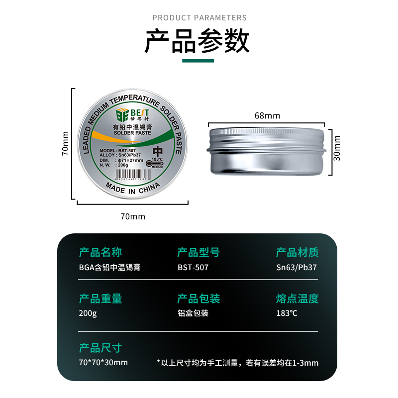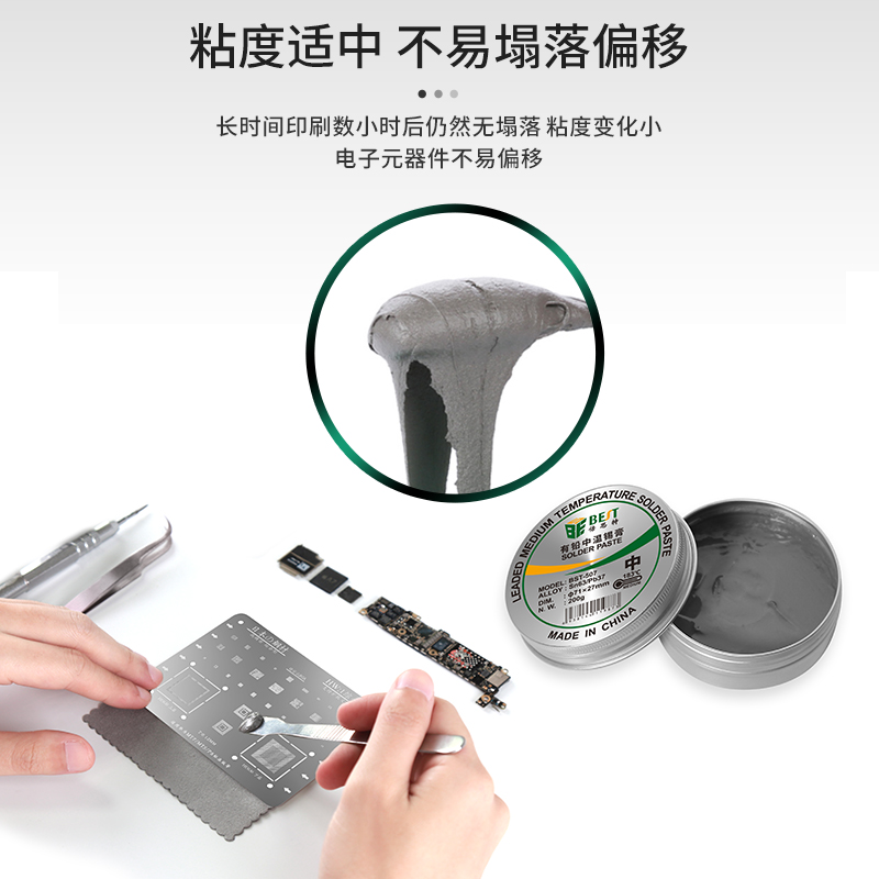 返回當(dāng)前位置: 首頁 / 產(chǎn)品中心 / BST-507 有鉛中溫錫膏 Sn63/Pb37 鋁罐BGA植錫膏200g