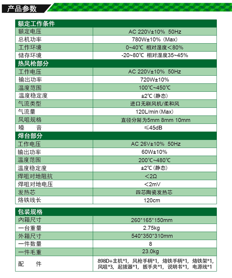 ? 產(chǎn)品名稱(chēng): 二合一雙數(shù)顯智能無(wú)鉛螺旋式熱風(fēng)槍+焊臺(tái)